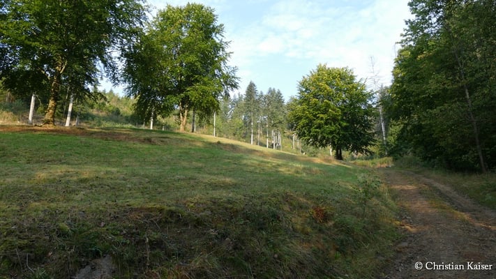 Anfang der 1970er Jahren wurden in unserem Projektgebiet die Talflächen mit Fichten angepflanzt. Eine übrig gebliebene Wiese, innerhalb des sich nun entwickelnden Fichtenforstes, bekam der LBV