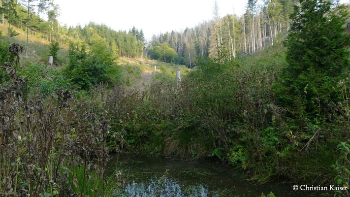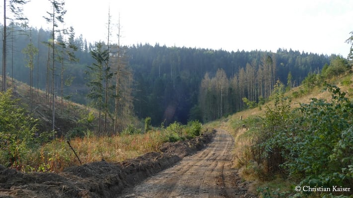 Trockenjahre ab 2019 führten zu einem großflächigen Absterben der Fichten. Die Kronacher Kreisgruppe konnte bis zum Jahr 2024 in diesem Talbereich insgesamt 10 ha dieser Flächen pachten bzw. erwerben. Hierfür besten Dank an die verkaufsbereiten ehemaligen und aktuellen Eigentümer (Verpachtung) der Flächen im Projektgebiet!